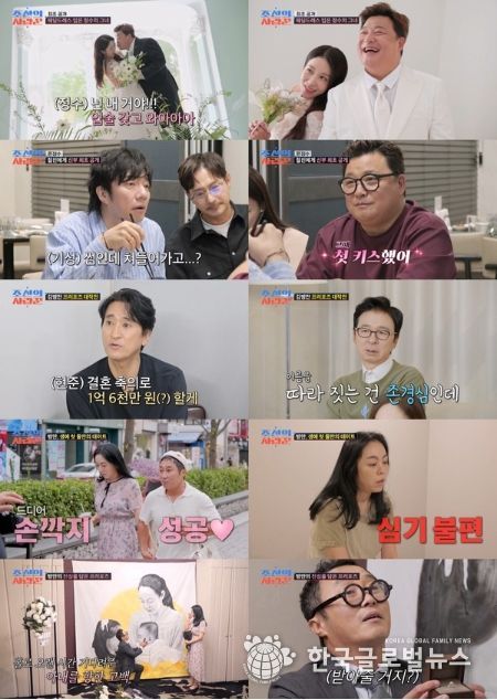 (한국글로벌뉴스 - 진입유 기자) TV CHOSUN 극사실주의 다큐 예능 ‘조선의 사랑꾼’에서 '원진서' 윤정수가 ‘찐친즈’ 배기성X임형준과 청첩장 모임을 가졌다. 또, 김병만이 결혼 전 63빌딩에서 아내에게 감동의 프러포즈를 하는 장면이 포착됐다.