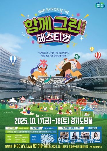 (한국글로벌뉴스 - 박소연 기자) 경기도가 오는 17, 18일 이틀간 수원 경기융합타운 광장(경기도담뜰)에서 제8회 경기도민의 날을 기념하는 ‘함께 그린(Green) 페스티벌’을 연다.