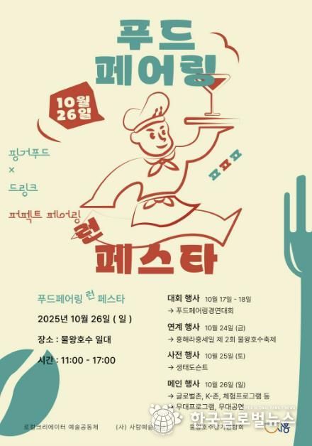 (한국글로벌뉴스 - 박소연 기자) 오는 10월 26일 오전 11시부터 오후 5시까지 물왕호수 일원에서 ‘제1회 푸드페어링런페스타’가 개최된다.