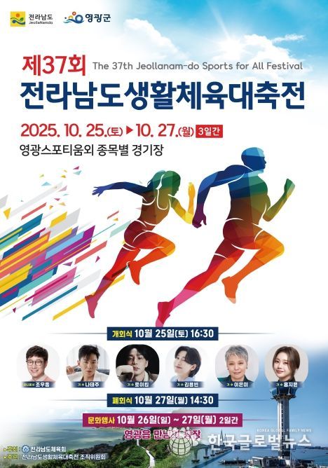 (한국글로벌뉴스 - 박지형 기자) 전라남도체육회가 주최하고 전라남도 생활체육대축전 조직위원회가 주관하는 제37회 전라남도생활체육대축전이 10월 25일 오후 4시 30분, 영광스포티움 종합운동장에서 성대하게 막을 올린다.