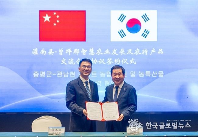 (한국글로벌뉴스 - 아셀 기자) 증평군이 자매도시인 중국 관남현과 손잡고 스마트농업 발전 및 농·특산품 교류 활성화를 위한 협약을 체결하며, 미래농업 협력의 새로운 장을 열었다.