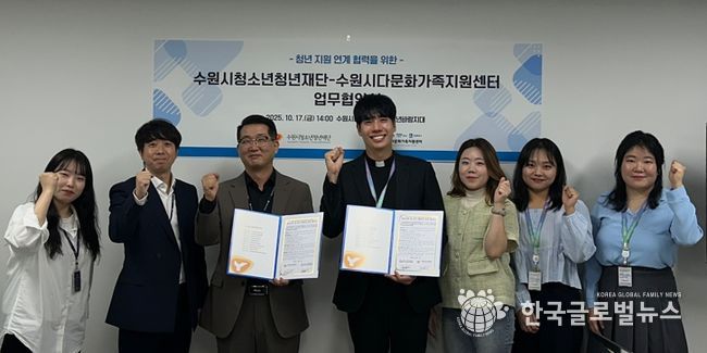 (한국글로벌뉴스 - 박소연 기자) 수원시청년지원센터는 지난 10월 17일 수원시다문화가족지원센터와 상호 교류 및 연계협력을 위한 업무협약을 체결했다.