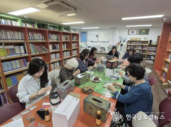 (한국글로벌뉴스 - 박소연 기자) 수원시 팔달구 우만2동 새마을문고는 지난 16일 문고 프로그램 일환으로 비즈 티슈케이스 만들기를 진행했다.