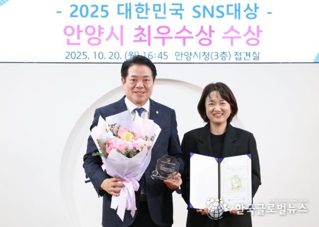 (한국글로벌뉴스 - 박소연 기자) 안양시가 ‘제15회 2025 대한민국 SNS 대상’ 기초지방자치단체 시 부문에서 최우수상을 수상했다.