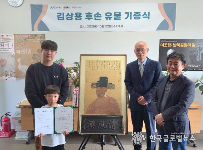 (한국글로벌뉴스 - 박소연 기자) 경기도박물관은 조선 중기 대표적인 문신이자 문장가였던 김상용(金尙容, 1561-1637)의 후손이 〈김상용 초상〉과 선조어필(宣祖御筆) 〈청풍계(淸風溪)〉 현판 등을 기증했다고 밝혔다. 이번 기증은 김상용의 후손인 김경일(김상용 16대손)이 선조들의 뜻을 기리고, 소중한 문화유산을 사회와 공유하고자 하는 뜻에서 이루어졌다.