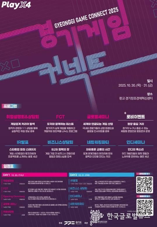 (한국글로벌뉴스 - 박소연 기자) 경기도가 오는 30일과 31일 이틀간 판교 경기창조경제혁신센터에서 ‘경기게임커넥트 2025’를 개최한다.