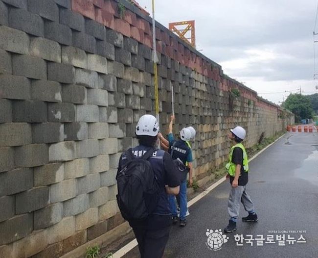 B시의 경우는 도로변 보강토옹벽의 전도 및 도로상부 균열이 발생했다고 안전예방핫라인에 접수됐다. 안전점검 결과 허용 기울기가 초과되고 상부도로에 인장균열이 다수 확인돼 집중호우시 옹벽 추가 전도 우려가 있었다. 이에 따라 해당 시에서 하부도로를 통제하고 옹벽을 보강해 안전조치를 진행하도록 컨설팅했다.
