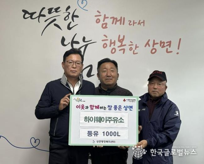 (한국글로벌뉴스 - 박소연 기자) 가평군 상면에 소재한 하이웨이주유소는 최근 상면 행정복지센터를 방문해 등유 1,000리터(L)를 기탁했다.