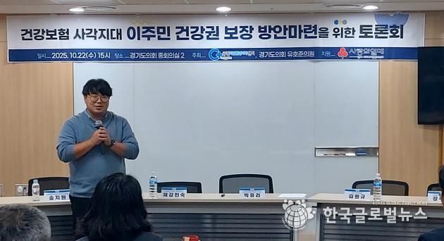 (한국글로벌뉴스 - 박소연 기자) 경기도의회 여성가족평생교육위원회 유호준 의원(남양주 다산·양정)은 10월 22일 오후 3시, 경기도의회 중회의실에서 열린 '건강보험 사각지대 이주민 건강권 보장 방안 마련을 위한 토론회'를 공동주최하며, 미등록 이주민의 건강권 보장을 위한 공공의 책임 강화 필요성을 강조했다.