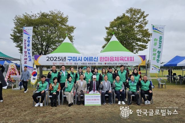 (한국글로벌뉴스 - 박지형 기자) 구미시는 10월 23일 낙동강체육공원 게이트볼장과 파크골프장에서 700여 명의 어르신이 참여한 가운데 ‘2025년 어르신 한마음체육대회’를 성황리에 개최했다. 이날 행사에는 김장호 구미시장, 박교상 구미시의장을 비롯해 시·도의원, 기관단체장이 함께해 어르신들을 격려했다.