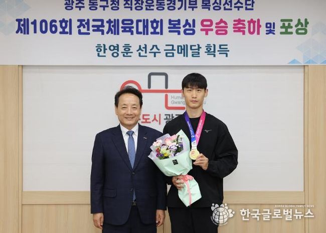 (한국글로벌뉴스 - 박지형 기자) 광주 동구는 직장운동경기부 동구복싱단 소속 한영훈 선수가 최근 부산 벡스코에서 열린 ‘제106회 전국체육대회’에 출전해 금메달을 수상했다고 밝혔다.