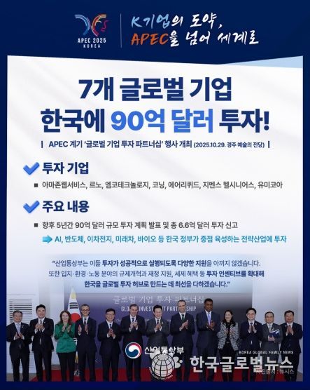 7개 글로벌 기업 한국에 90억 달러 투자!