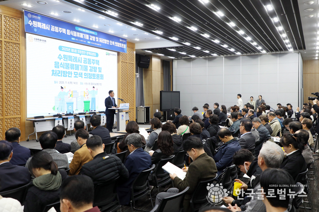 (한국글로벌뉴스 - 박소연 기자) 수원특례시의회 환경안전위원회는 11월 6일, 오후 2시, 수원시청 별관 1층 중회의실에서 ‘공동주택 음식물류폐기물 감량 및 처리방안 모색’이라는 주제로 의정토론회를 개최했다.