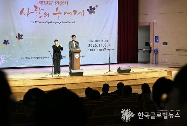 (한국글로벌뉴스 - 박소연 기자) 안산시는 지난 8일 상록구청 시민홀에서 경기도농아인협회 안산시지회 회원과 수어제 참가자 및 자원봉사자 등 200여 명이 참석한 가운데 ‘제19회 사랑의 수어제’를 개최했다고 10일 밝혔다.