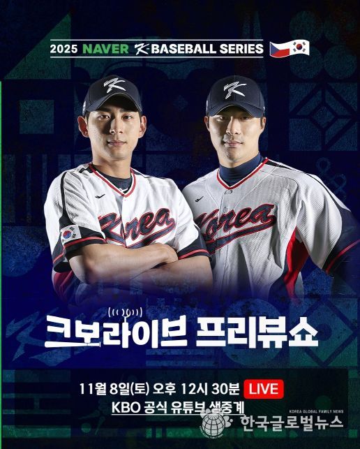 (한국글로벌뉴스 - 박지형 기자) KBO 공식 유튜브 라이브 방송인 ‘크보라이브’가 오는 11월 8일(토)과 9일(일) 양일간, 2025 NAVER K-BASEBALL SERIES 고척스카이돔 현장에서 특별 현장 프리뷰쇼로 생방송을 진행한다.