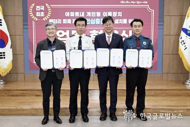 (한국글로벌뉴스 - 박소연 기자) 안산시는 지난 10일 안산시청 제1회의실에서 안산소방서 등 4개 기관과 아파트단지 내 개인형 이동장치(PM : Personal Mobility) 배터리 ‘안심 충전소’ 설치를 위한 업무협약(MOU)을 체결했다고 11일 밝혔다.