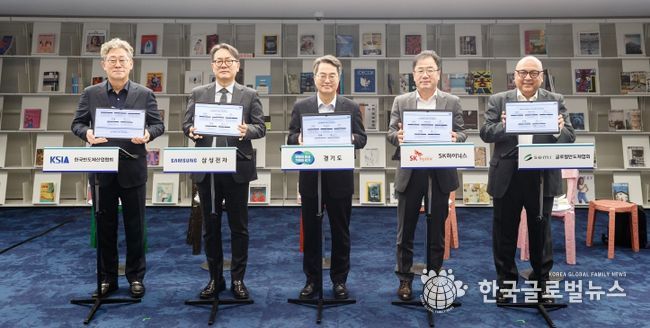 경기도는 11일 경기도서관에서 삼성전자, SK하이닉스, 한국반도체산업협회, 글로벌반도체협회(SEMI)와 재생에너지 확대를 위한 업무협약을 체결했다.