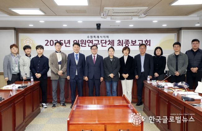 (한국글로벌뉴스 - 박소연 기자) 수원특례시의회 의원연구단체인 ‘수원특례시 대형 점포와 소규모 점포의 균형 관리를 통한 유통산업의 상생으로 지역경제의 안정적 발전을 위한 기초 연구회’가 11월 11일 수원시의회 기획경제위원회 회의실에서 연구용역 최종보고회를 열었다.