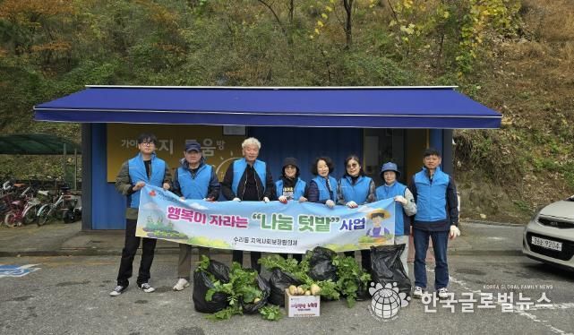 ‘행복이 자라는 나눔 텃밭’은 산본가야2차 아파트 단지 내 유휴 부지(약 140㎡)를 주택관리공단으로부터 제공받아, 협의체 위원들이 직접 다양한 농작물을 재배하고 수확하여 어려운 이웃과 나누는 수리동만의 특화사업이다. 올해는 8월에 가을무 모종을 심어 정성껏 가꾸어왔으며 풍성한 수확의 기쁨을 함께 나누게 됐다.