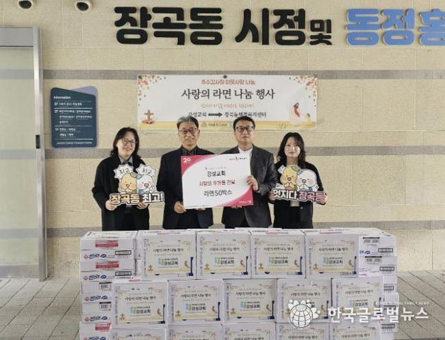 대한예수교 장로회 소속 강성교회는 기독교연합회를 통해 시흥시에 꾸준히 후원 활동을 해왔으며 이번 추수감사절을 맞이해 장곡동 관내 어려운 이웃에게 따뜻한 마음을 전하고자 라면을 후원했다.
