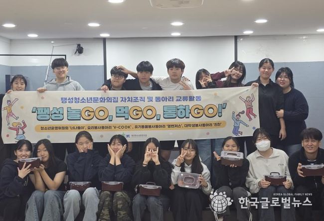 (한국글로벌뉴스 - 박소연 기자) (재)평택시청소년재단 팽성청소년문화의집 자치기구 청소년운영위원회 ‘너나들이’와 유기동물봉사동아리 ‘멍벤져스’, 대학생봉사동아리 ‘친친’, 요리봉사동아리 ‘V-COOK’은 지난 15일에 팽성청소년문화의집에서 청소년 교류 활동 ‘팽성 놀GO, 먹GO, 통하GO!’를 성황리에 마무리했다.