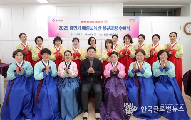 (한국글로벌뉴스 - 박소연 기자) 용인특례시는 19일 용인시예절교육관에서 ‘2025년 하반기 예절교육관 정규과정 프로그램’ 수료식을 개최했다고 밝혔다.