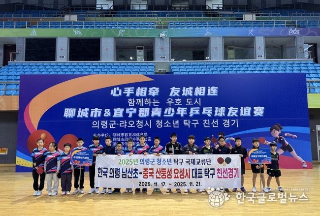 (한국글로벌뉴스 - 박지형 기자) 의령군 남산초등학교 탁구부 학생들이 세계 탁구 강국 중국을 찾아 국제 청소년 교류전을 펼쳤다. 의령군은 17일부터 4박 5일 동안 남산초 탁구선수 7명을 포함한 교류단이 자매도시 요성시를 방문해 친선 경기와 교류 프로그램을 진행했다고 20일 밝혔다.