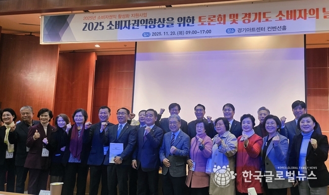 (한국글로벌뉴스 -박소연 기자) 20일(목),경기도소비자단체협의회(회장 손철옥)가 경기도단체 설립 10주년을 맞이하며 '2025 소비자권익 향상을 위한 토론회 및 경기도소비자의날 기념식'을 개최했다.