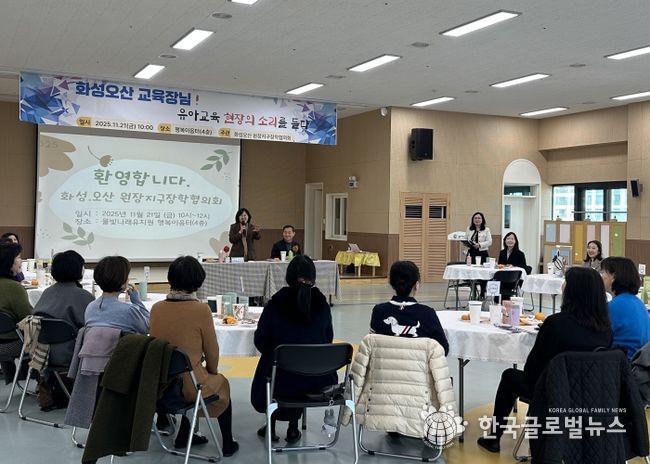 (한국글로벌뉴스 - 박소연 기자) 경기도화성오산교육지원청은 11월 21일 물빛나래유치원에서 공립유치원장들이 참석한 가운데 ‘2025 교육장-공립유치원장 소통 간담회’를 개최했다.