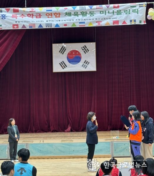 (한국글로벌뉴스 - 박소연 기자) 시흥교육지원청 특수교육지원센터는 지난 11월 21일 시흥교육청만의 특별한 체육활동-미니올림픽 행사를 성황리에 마쳤다. '파이팅 해야지! 우린 SH(시흥)학생'이라는 제목의 이 행사는 특수교육대상학생들의 건강과 체력증진을 도모하고 사회적 기술과 정서적 안정을 증진하는 데 목적이 있다.