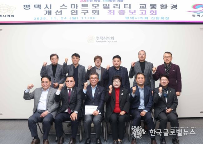 (한국글로벌뉴스 - 박소연 기자) 평택시의회 의원 연구단체인 ‘평택시 스마트모빌리티 교통환경 개선 연구회’는 24일 시의회 간담회장에서 최종보고회를 개최했다.