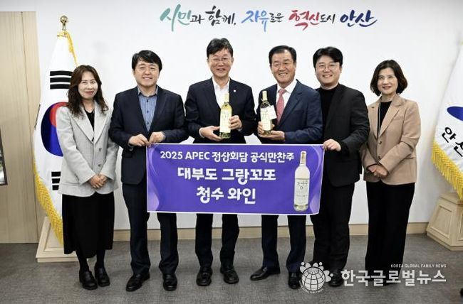 (한국글로벌뉴스 - 박소연 기자) 안산시는 최근 APEC 정상회의 공식 만찬주로 오른 그랑꼬또 ‘청수’와인 생산 법인 그린영농조합법인을 초청해 격려하는 자리를 마련했다고 26일 밝혔다.