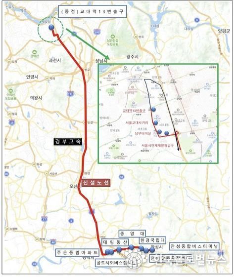 (한국글로벌뉴스 - 박소연 기자) 안성시는 국토교통부 대도시권광역교통위원회 노선선정 심의에서 “안성종합버스터미널~서울남부터미널~교대역을 잇는 광역버스 광역버스 신규 노선이 26일 최종 선정됐다고 밝혔다.