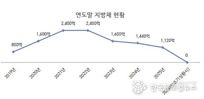 해당 지방채(2400억원)는 △2023년 1600억원 △2024년 1440억원 △2025년 1120억원으로 점차 줄었다.