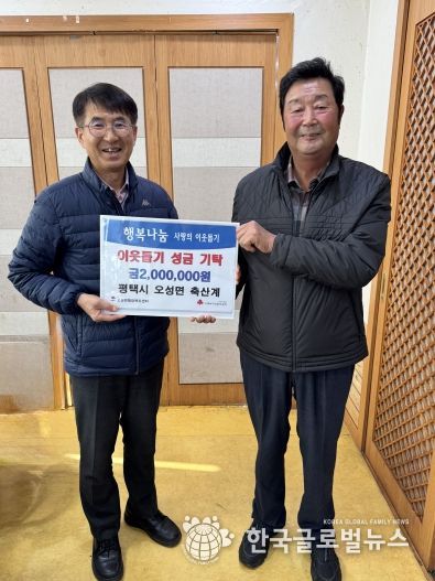 (한국글로벌뉴스 - 박소연 기자) 평택시 오성면은 28일 오성면 축산계가 연말을 맞아 관내 취약계층의 겨울나기 지원을 위한 성금 200만 원을 기부하는 전달식을 진행했다고 밝혔다.