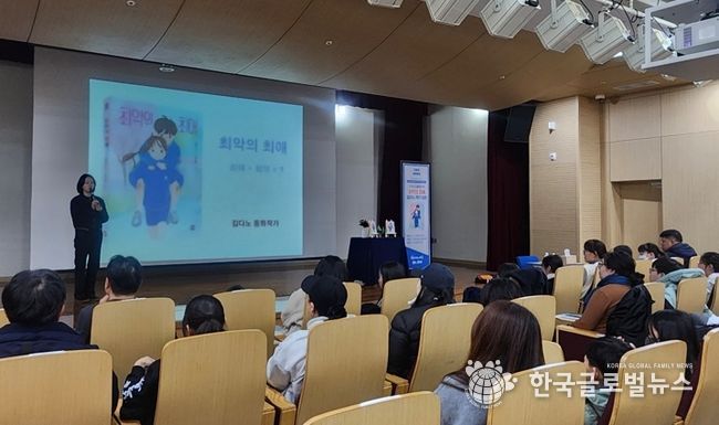 (한국글로벌뉴스 - 박소연 기자) 광명시는 지난 29일 소하도서관에서 ‘광명시민 책 한 권 함께 읽기’ 올해의 책 어린이 부문 선정도서 '최악의 최애'의 저자 김다노 작가 초청 강연회를 개최했다.