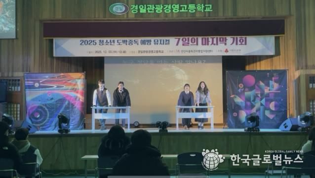 연극 ‘7일의 마지막 기회’는 청소년들이 주체가 돼 상연됐으며, 일상에서 흔히 접할 수 있는 중독 위험 요인을 연극으로 풀어내 학생들의 공감과 집중을 이끌었다.