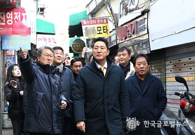 (한국글로벌뉴스 - 박지형 기자) 오세훈 서울시장이 4일 노후 건축물이 밀집한 세운지구를 찾아 장기간 정체된 정비사업으로 인한 주민 불편과 요구사항을 청취했다. 세운 재개발은 서울시가 민간 참여 유도를 통해 도심에 대규모 녹지를 확보하기 위한 ‘녹지생태도심 재창조 전략’과도 직접 맞닿아 있다.