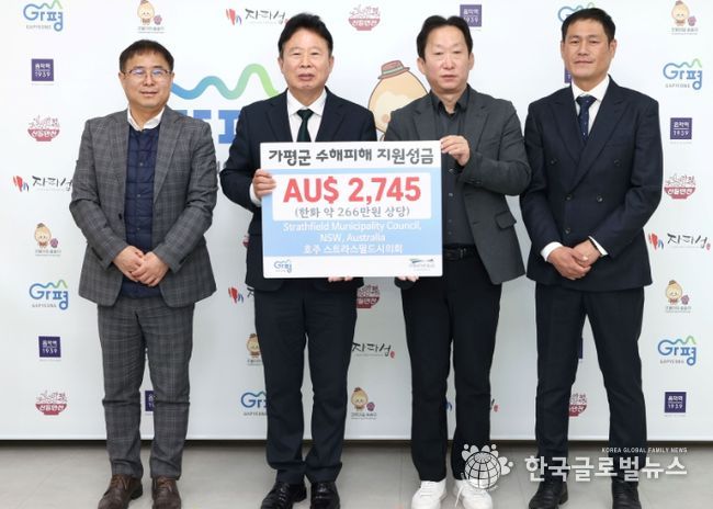 가평군과 호주 스트라스필드시는 2011년 8월 자매결연을 맺은 이후 문화, 체육, 교육, 보훈 등 폭넓은 분야에서 교류를 이어오며 우호를 다져왔다. 앞서 지난 10월에도 호주 시드니 등지에 거주하는 교민 34명이 자발적으로 성금을 모아 가평군청을 직접 방문해 전달한 바 있다.