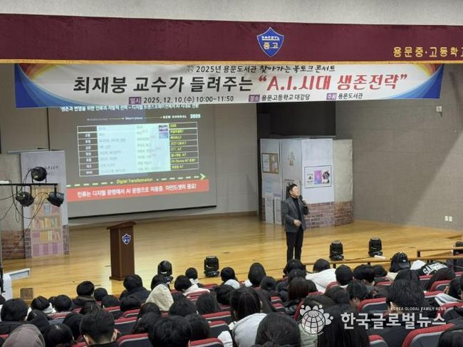 이날 강연에는 용문고등학교 학생 400여 명이 참여해 디지털 대전환 시대를 살아갈 청소년들의 미래 역량을 키우는 기회를 가졌다.