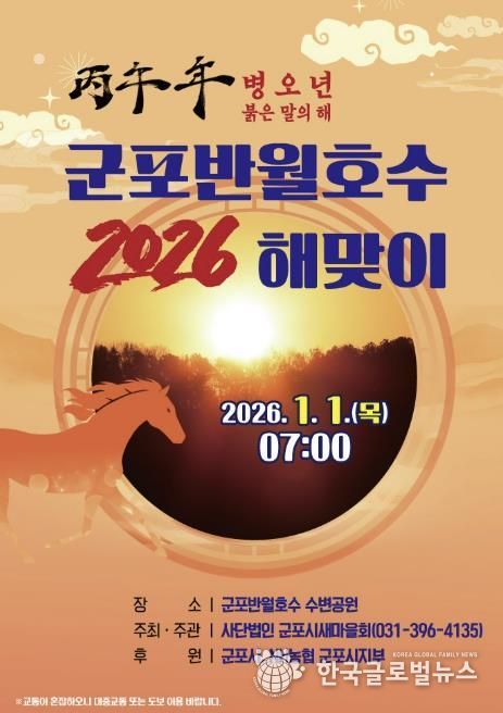 하은호 군포시장은 “2026년에도 반월호수 해맞이 행사가 안전하고 의미 있게 진행될 수 있도록 준비에 최선을 다하고 있다”며 “병오년 새해에도 시민 여러분의 건강과 행복, 소망이 이루어지길 기원한다”고 말했다.
