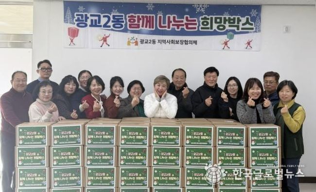 (한국글로벌뉴스 - 박소연 기자) 광교2동 지역사회보장협의체는 지난 12월 1일부터 15일까지 2주간 관내 독거노인을 위한 생활용품 등 선물 150박스를 완성한 후, 18일 박남숙 광교2동장과 이종금 지역사회보장협의체 위원장 및 위원들은 '함께 나누는 희망박스'전달식을 가졌다.