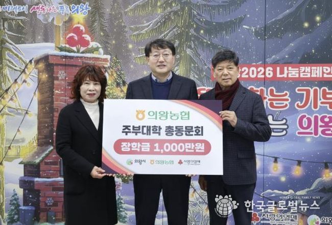 (한국글로벌뉴스 - 박소연 기자) 의왕시는 12월 18일 ‘의왕농협주부대학 총동문회가 지역 인재 육성을 위해 장학금 1,000만원을 기부했다고 밝혔다.
