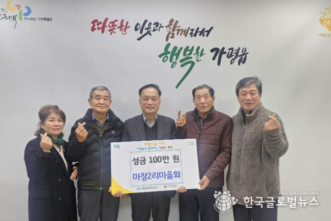 (한국글로벌뉴스 - 박소연 기자) 가평군 가평읍 마장2리 마을회는 최근 행정복지센터를 방문해 취약계층 이웃을 돕기 위한 성금 100만 원을 전달했다.