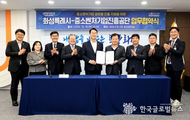 (한국글로벌뉴스 - 박소연 기자) 화성특례시가 지난 18일 중소벤처기업진흥공단과 관내 중소기업의 글로벌 진출 지원을 위한 ‘수출물류지원사업 업무협약’을 체결했다.