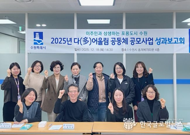 (한국글로벌뉴스 - 박소연 기자) 수원특례시는 18일 수원시 홍재복지타운에서 ‘2025 다어울림 공동체 공모사업 성과보고회’를 열고 한 해 동안 추진한 공동체 사업 성과를 공유했다.