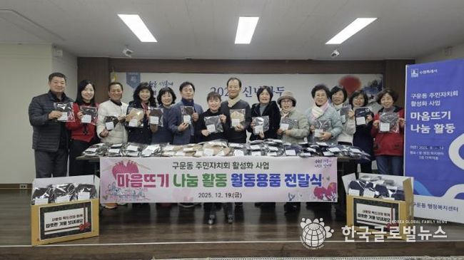 (한국글로벌뉴스 - 박소연 기자) 지난 19일, 권선구 구운동 주민자치회가 주민자치회 활성화 사업 일환으로 추진한 ‘마음 뜨기 나눔 활동’을 통해 만든 목도리 400여 개를 구운동 행정복지센터에 전달했다.