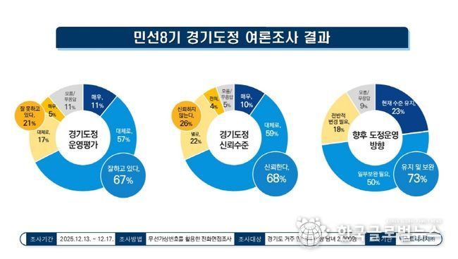 (한국글로벌뉴스 - 박소연 기자) 민선8기 경기도정에 대한 여론조사 결과 도정 운영에 대한 도민 평가가 지난 9월 조사보다 상승한 것으로 나타났다.