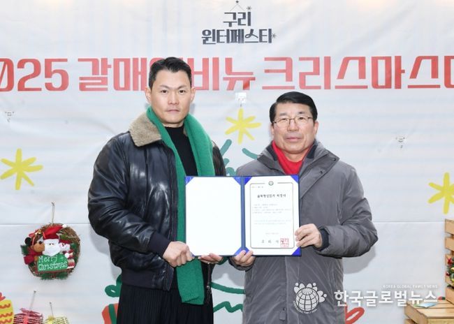 (한국글로벌뉴스 - 박종욱 기자) 구리시는 지난 12월 20일 ‘2025 구리 윈터페스타–갈매애비뉴 크리스마스마켓’ 행사장에서 갈매애비뉴 상권 상인회에 ‘골목형상점가 지정서’를 교부하고, 상인들과 소통의 시간을 가졌다고 밝혔다.
