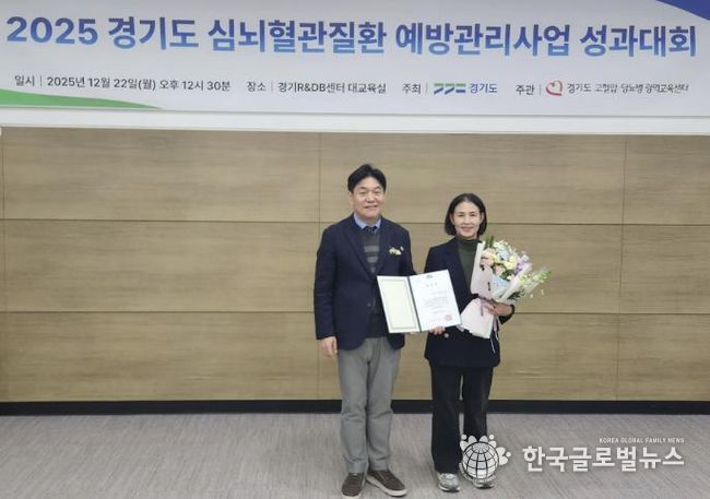 (한국글로벌뉴스 - 박소연 기자) 용인특례시 기흥구보건소는 22일 ‘2025년 심뇌혈관질환 예방관리사업 성과대회’에서 우수기관으로 선정돼 경기도지사 기관 표창을 수상했다고 23일 밝혔다.